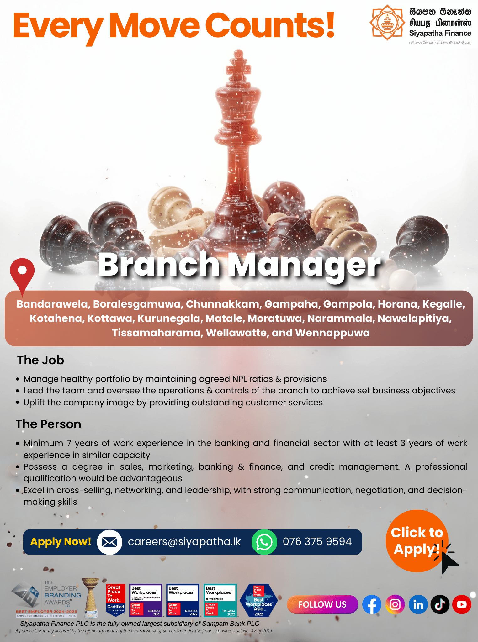 Siyapatha Finance PLC is a fast growing finance company which operates as the largest subsidiary of Sampath Bank PLC. We are currently catering in to diversified market segments through our product portfolio. Our Vision is to be the most innovative and trusted premier financial service provider.